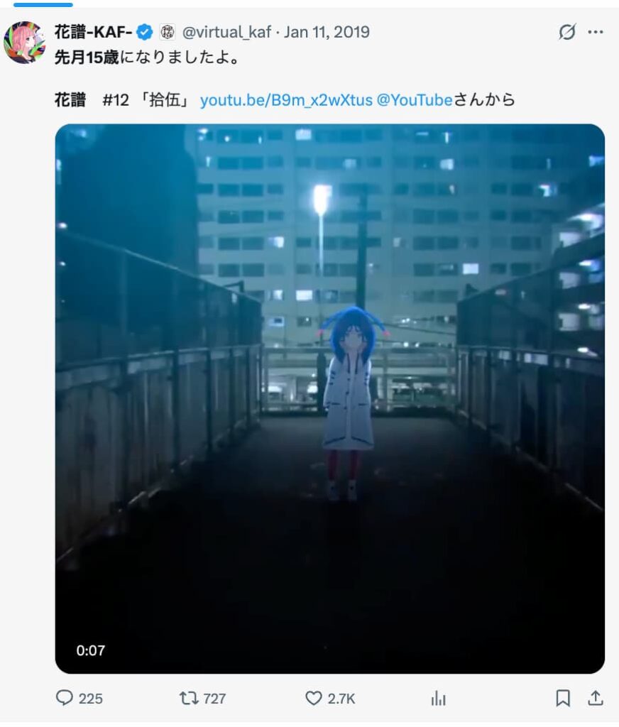 2019年1月11日、花譜はX(旧Twitter)でこのように投稿しています。